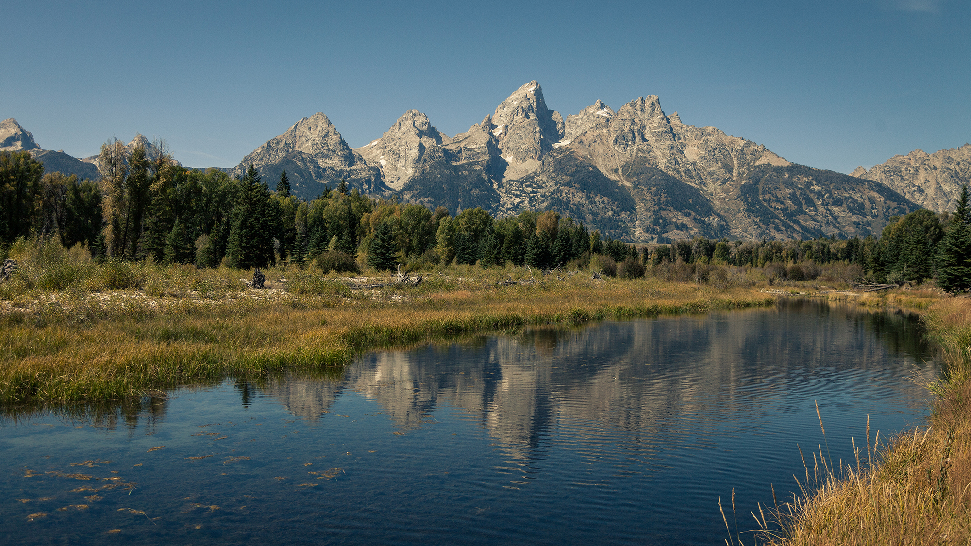 If you’ve never seen the Tetons, I’m going to do a very poor job of describing their size and the feeling they evoke.  They’re just something that you need to see for yourself.  At a minimum, I hope you have a few minutes to Google search Ansel Adams’ epic series of photographs commissioned by the National Park System of these peaks.  If you can’t do that, my photos will have to do.  The Tetons rise up –seemingly out of nowhere– from the flat, almost terrain-free valley floor that lays to their east.  The landscape simply goes from flat to ginormous mountains.