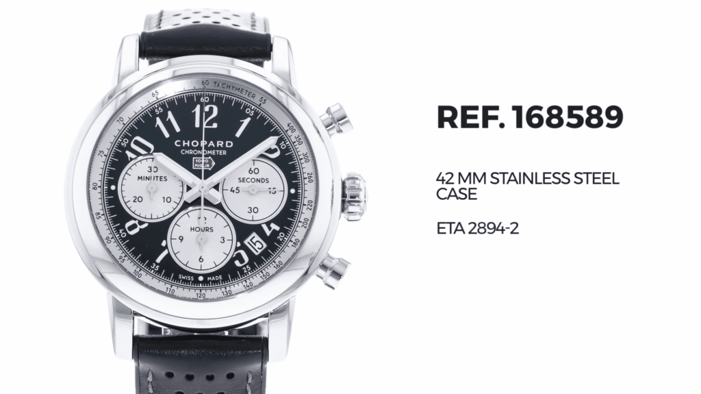 So up next in our Speedmaster alternatives we’re going to look at the Chopard Mille Miglia. Now we’re looking at a 42 millimeter stainless steel sport watch that has pretty heavy racing inspired heritage, and Chopard went ahead and put inside this their take on the ETA 2894, which if you remember that is the same movement that is inside the Carrera and their take is the Calibre 17. And I think this speaks to Chopard saying hey we’re going to make a chronograph and we’re going to make one with a robust reliable movement. To that point the Mille Miglia means “one thousand miles” in Italian and references a road race. It was about a thousand-mile race that took place in the early 20th century in Italy. If you like the Speedmaster Professional, you may like it because of its heritage because it went to the moon and what we have here instead is a watch that drives around Italy so plenty of heritage. It is a great proportioned watch. So, there you go the Chopard Mille Miglia.