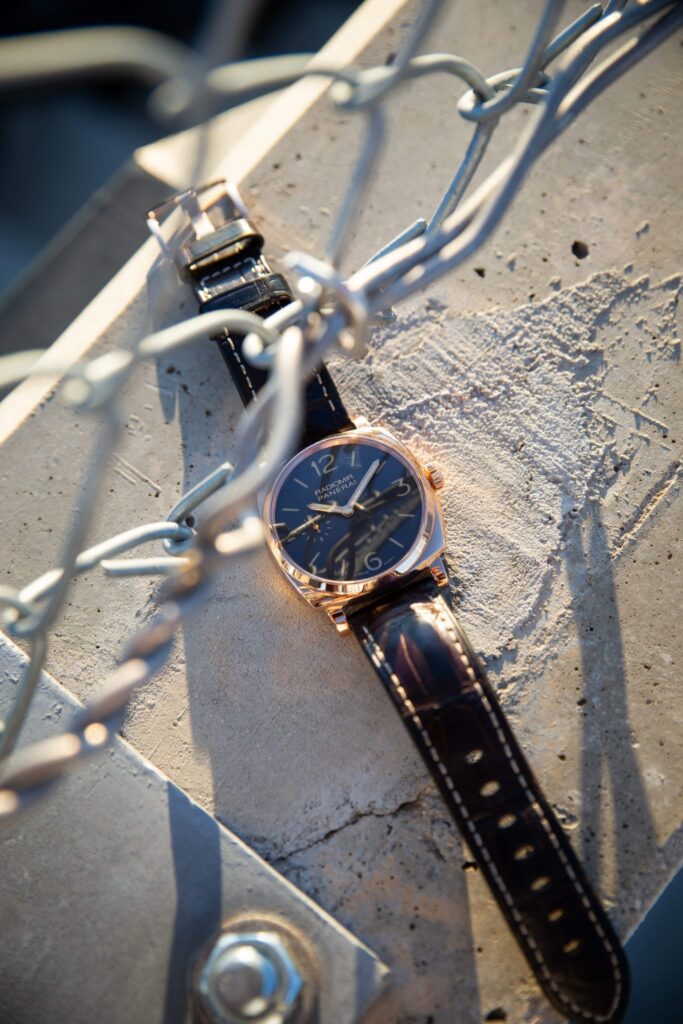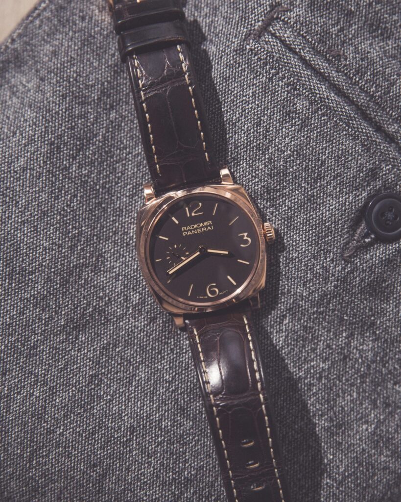 When answering the question, can you dress up a Panerai, there are a few variables we need to address. To clarify, not all of Panerai’s offerings are fit to be dressed up. In their model line, only watches such as the PAM 513 Radiomir are ideal for settings that are more formal. I love the classic styling cues indicative of Panerai’s DNA that I find in this watch. However, this piece offers those cues in rose gold, with an elegant dark brown leather strap. With a thickness of only 11.5mm, it also fits easily under dress-shirt sleeves. In addition, the lack of their iconic crown guard helps this watch take on a more subdued role.