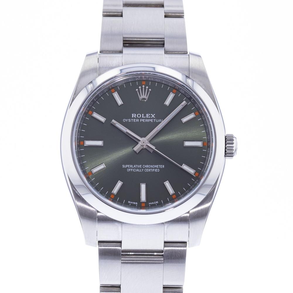 The Rolex Oyster Perpetual can often be an overlooked Rolex, but it is a direct descendant of the original Oyster, the world’s first “waterproof” wristwatch and shouldn’t be dismissed. It features incredible chronomatic precision packed into an understated and classic case. Coming in at 34mm it is a perfect unisex watch. The olive green dial with the orange accents are a modern interpretation of one of the great all-time pieces. Plus you can take it from the office right to your vaction without missing a beat.