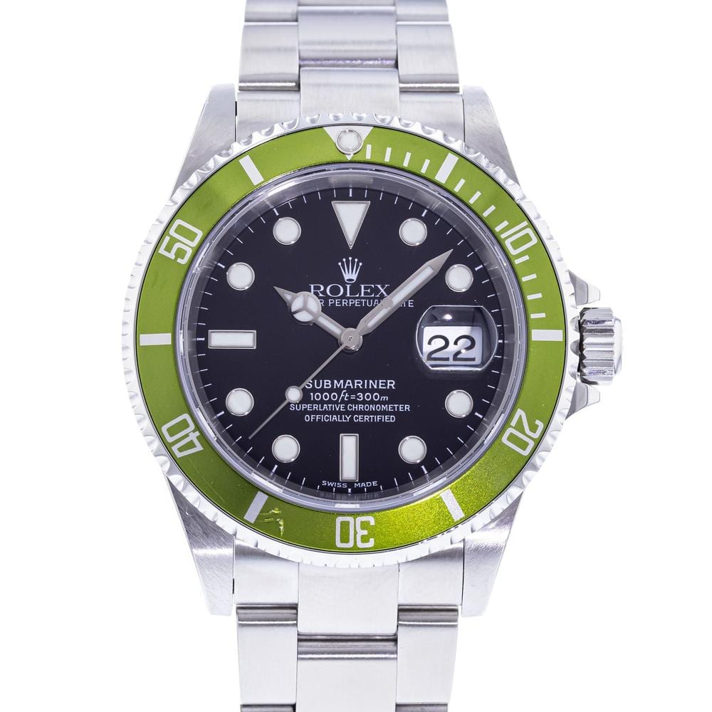 To commemorate the occasion, Rolex released the Ref. 16610V (also sometimes listed as the Ref. 16610LV). The model became known as “The Kermit” for its eye-catching bright green bezel, contrasted by a classic black dial. The production of The Kermit ended seven years later in 2010, when the brand released yet another green model: the Ref. 116610LV. In addition to a green bezel, the new model, dubbed “The Hulk,” also features a matching green dial. Since then, the color green has become synonymous with some of Rolex’s most unique and special pieces.