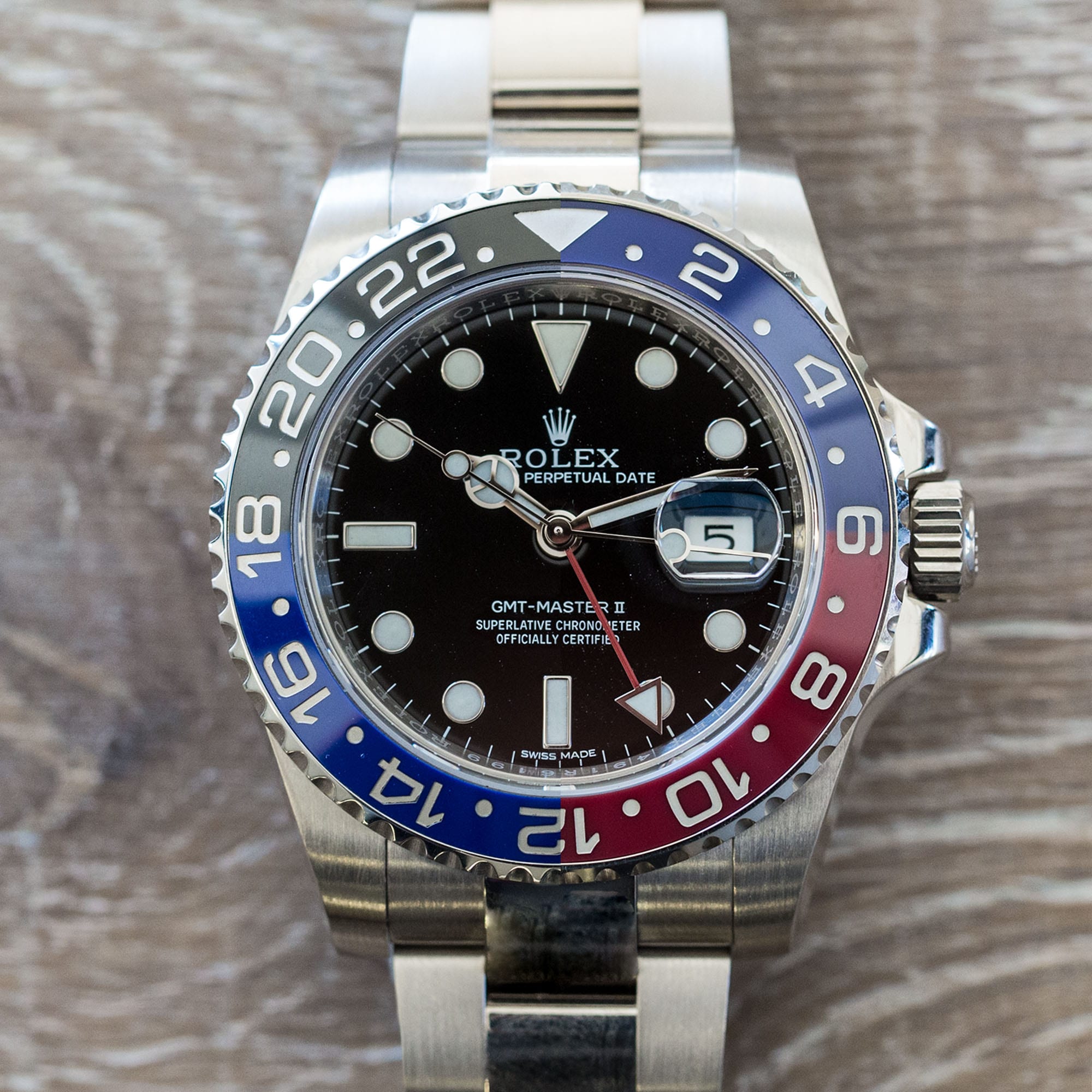 Before the ceramic GMT Pepsi, Rolex launched updated GMT Master II watches that retained the blue and red tones for the bezel but decided in 2007 to stop producing them. Not too long after this, they had all the GMT Master II watches moved to Cerachrom ceramic bezels. This makes the GMT Batman the first ever to have a blue and black ceramic bezel; and GMT Pepsi, the first ever to have red ceramic available and featured commercially in a time piece.