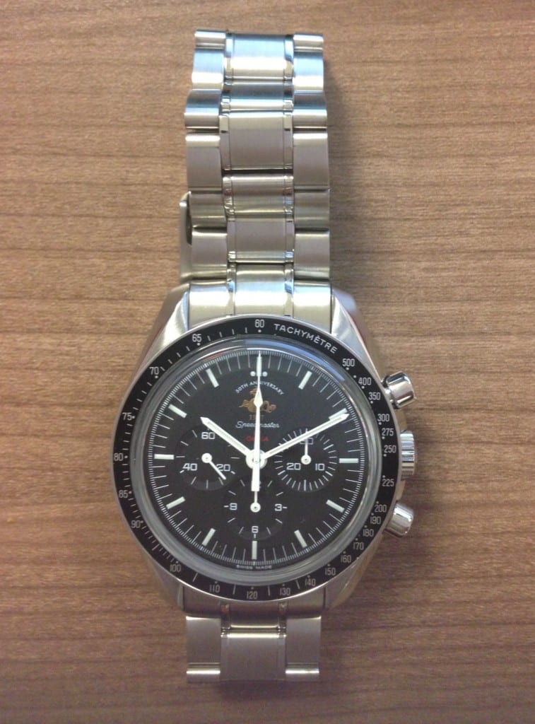 Before starting the chronograph, make sure that the watch is properly wound. To activate the chronograph, press the top pusher, usually located at 2 o’clock, and the chronograph hand will begin making its way around the dial. This OMEGA Speedmaster has two subdials, one is a continual seconds hand and the other is a minute counter for the chronograph. Many watches will also have an hours counter. Once the chronograph reaches one minute, the minute recorder will jump to reflect that one minute has elapsed, while the chronograph hand continues to rotate. Press the start/stop button to stop the chronograph, while the continual seconds hand continues to run. The bottom pusher resets both the chronograph hand and the minute recorder.