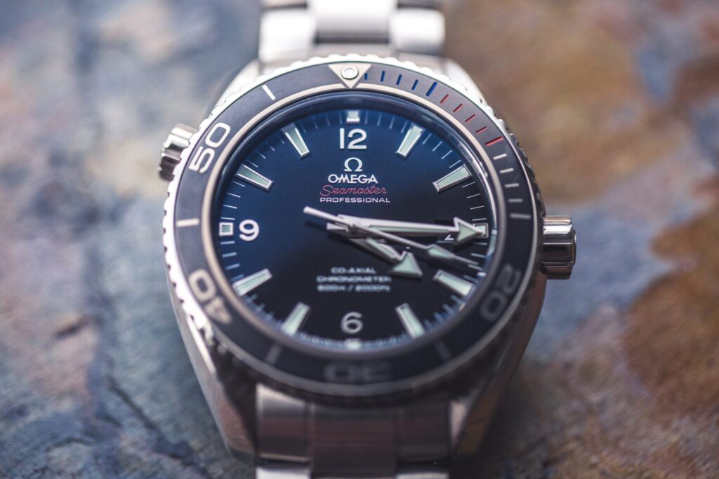 My favorite wear right now is the Omega Seamaster Planet Ocean 45mm, Ref 2200.51 (with orange “12” “6” and “9” on the dial.). As with any watch I’ve owned in the last decade or will own in the future, I wear the SMPO purely for its looks, not to keep track of time. In fact most often I don’t even bother to set the time. I’m really into NATO style straps right now, and I switch up straps almost every day I put the watch on. I am currently rotating through black, orange (perfectly matching the dial numerals), olive green, and the “James Bond NATO” (black/olive/maroon stripes).