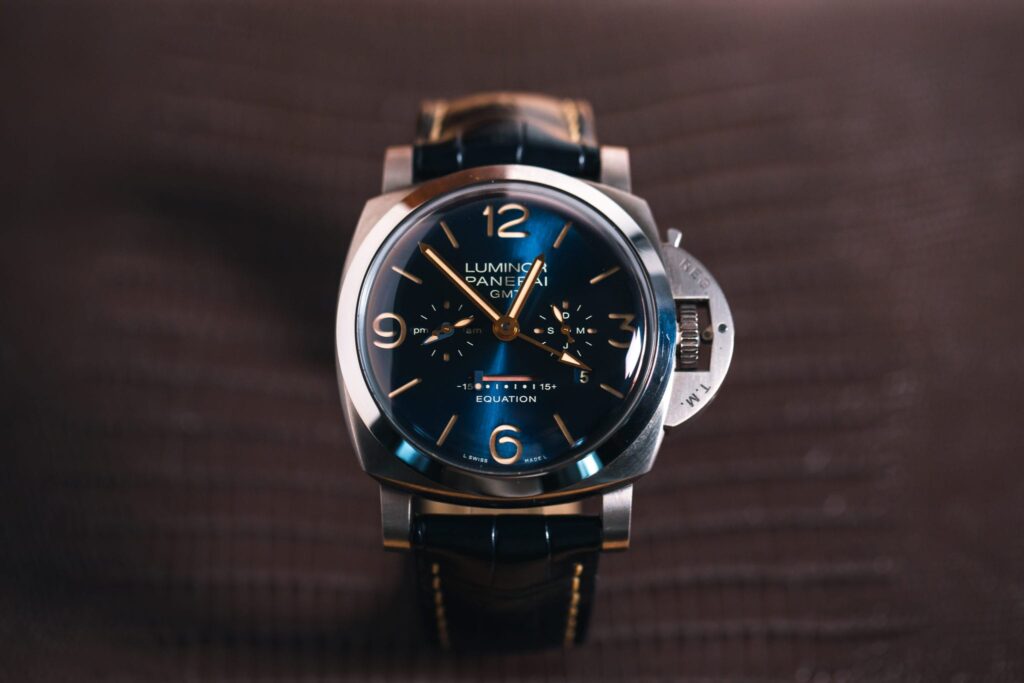 The Panerai Luminor 1950 Equation of Time 8 Days is one example of the latter. In this model, Panerai couples the impressive equation of time complication with a second time zone display with AM/PM indicator. Despite these additional features, the model maintains the profile of watches in the 1950 collection with a 47mm case. Yet, it remains lightweight with a titanium construction. It also offers a view of the movement in all its glory through the sapphire caseback. The Luminor 1950 Equation of Time 8 Days houses the brand’s in-house P.2002/E caliber. It provides an eight-day power reserve, which is useful in accommodating the watch’s complex functions.
