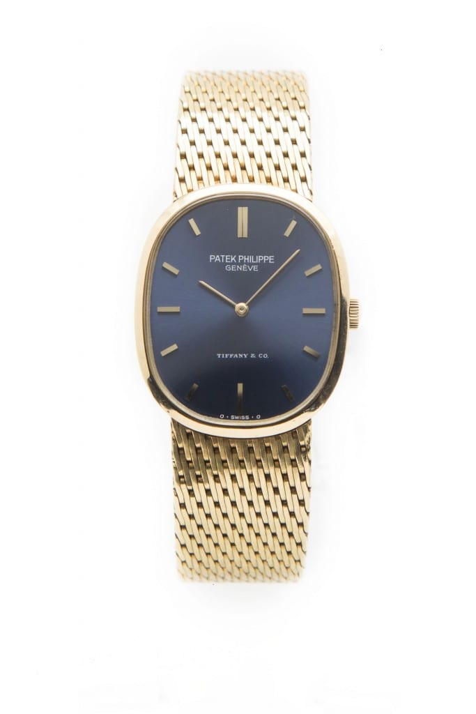 One of Patek’s most enduring styles, the Ellipse has been in production ever since 1968. These timepieces grace the wrists of thousands of Patek enthusiasts who cling to the timeless elegance of the Ellipse. Typified by an oblong shape, these watches are stunning examples of truly classic timepieces. We just received a one-of-a-kind Patek Ellipse, ref. 3748/1. It is not the solid gold bracelet and deep blue dial that sets this watch apart. Even the fact that the piece was purchased at Tiffany & Co is not enough to truly deem the piece as unique.