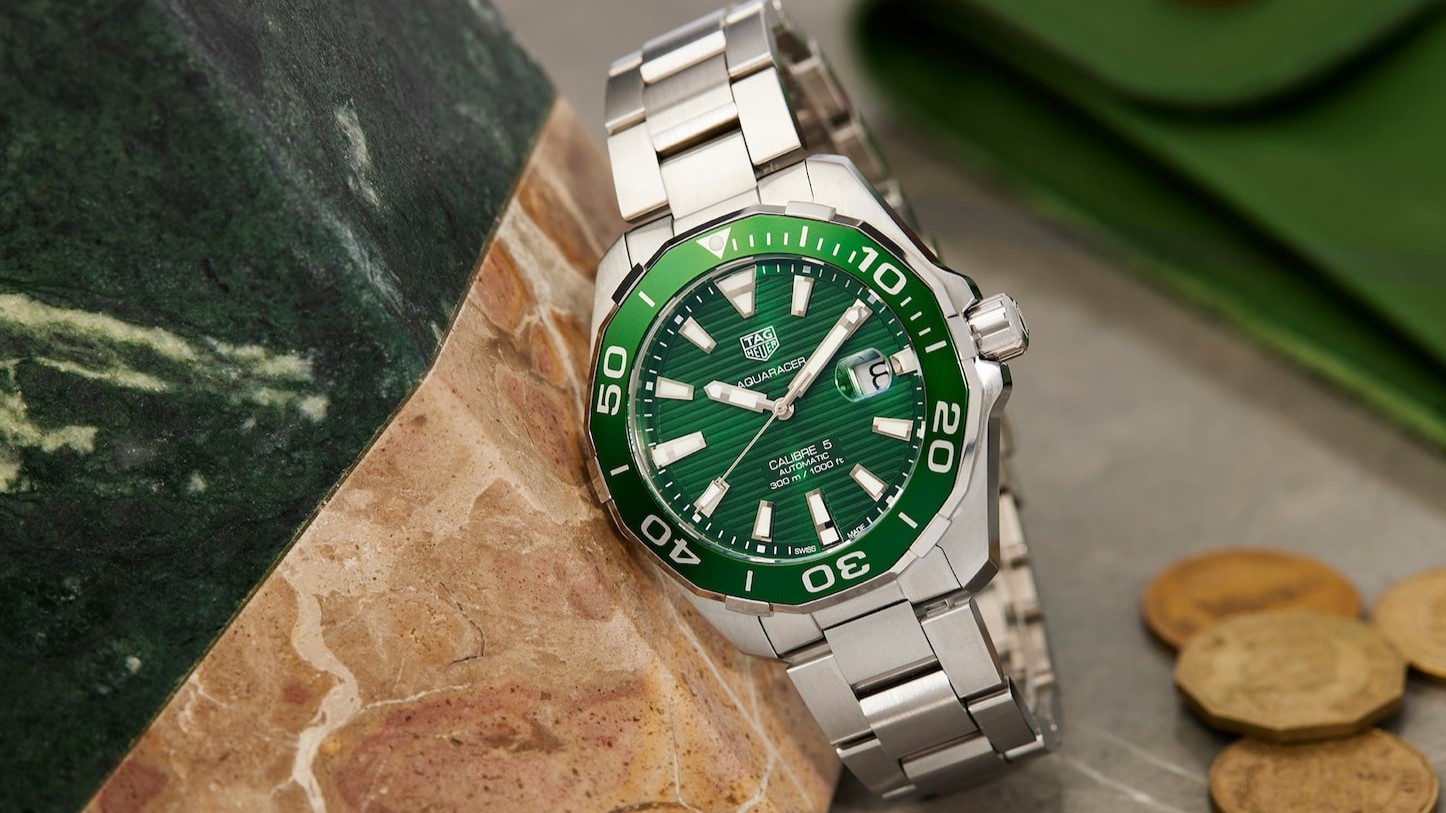 The Aquaracer is often unfairly forgotten in the conversation around dive watches. It ticks all of the boxes you would expect with 300m water resistance, dive bezel, and good build quality. The biggest selling point for this watch is to talk to someone who owns one. They will often go on and on about how much they love it, how well it has treated them, and how people should be talking about it more. I have yet to talk to someone who wasn’t happy to have it on their wrist. The angular bezel makes turning it a breeze, and the applied markers have enough lume to make underwater reading just as easy. Green dive watches have been growing in popularity over the past few years with nearly every major brand carrying one now. Do not overlook TAG Heuer’s entry into the green dive watch field.