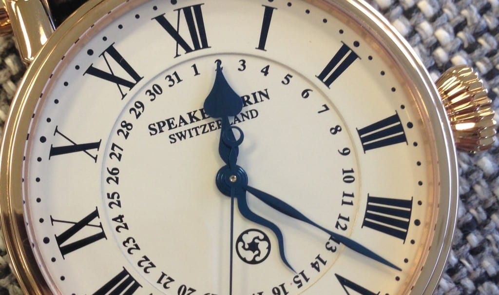 Speake Marin Serpent Calendar Caseback2The “Piccadilly” case and lugs are uniquely Speake Marin. The Piccadilly case is comprised of long, stout lugs with large screws, an oversized crown, a thin bezel, and steep sides. The Speake Marin “Piccadilly” was one of the first watch models released by Speak Marin. The watchmaker named the watch as a tribute to his years spent in antique watch restoration in England. The signature lugs identify the watch as a Speake Marin from a distance.