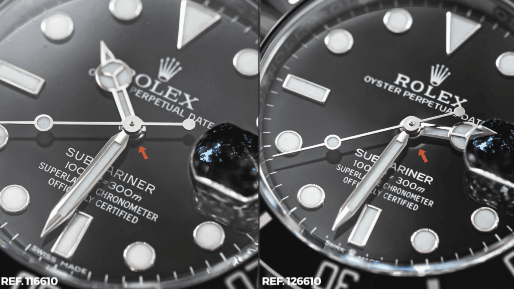 Another point, this is going to be kind of hard to notice, but is at the center post it does seem that it dips in a little more than the previous Supercase reference and you can kind of catch it in some of the reflections from the high gloss lacquer on the dial . Someone did mention that in the previous video, and I didn’t notice it at first, and as I looked harder and harder, I think it is there. I think there is a noticeable dip that wasn’t in the previous reference.