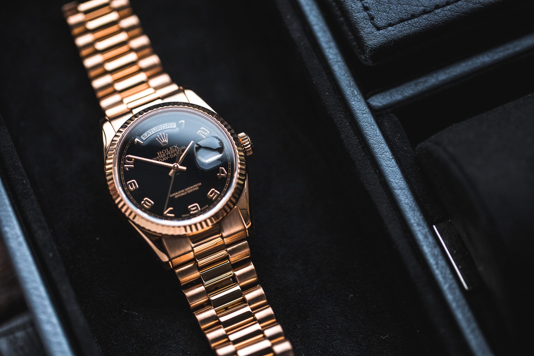 Rolex released the first President bracelet on the very first Day-Date about a decade after the Oyster in 1956. Since its inception, the brand has only featured the President bracelet on a Day-Date, also affectionately known as the President. The design of the President bracelet somewhat combines the characteristics of the Jubilee and Oyster. Like the Oyster, it features a three-link configuration. Additionally, like the Jubilee, it showcases a combination of larger and smaller sized links. Despite the similarities, one characteristic makes the President bracelet unique. Its links are semi-circular and curved in such a way that creates a rounded, beaded look.