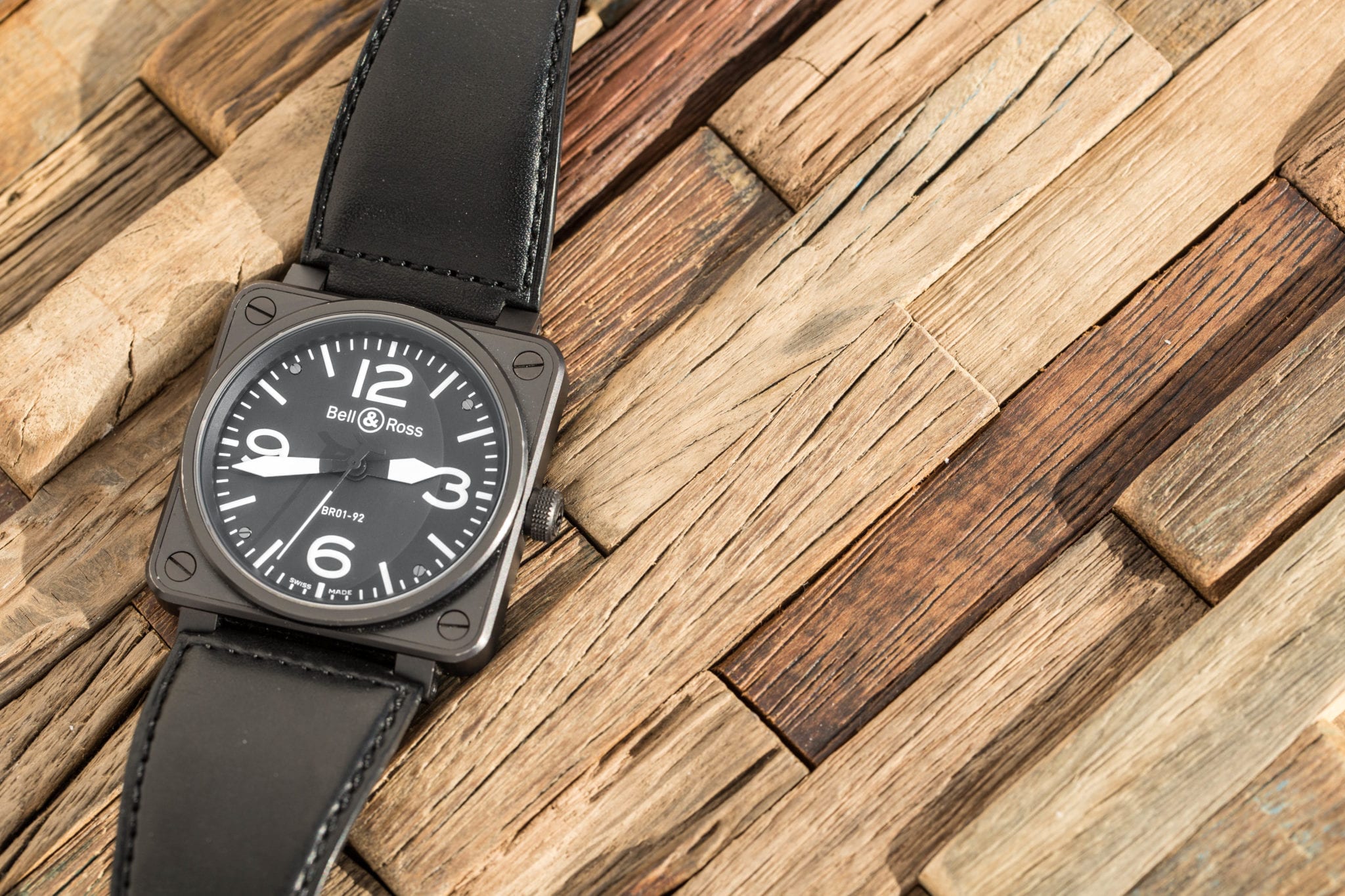 Last but not least among our starter watch selections is the Bell & Ross Aviation. The brand has a long history of producing pilot’s watches. However, for many years, they had a more traditional aesthetic with round dials. In 2005, they introduced the BR01 with the now iconic square case that gives a nod to classic cockpit instruments. Since then, the unique design has become synonymous with the brand. The handsome BR03-92 is a more modern variation of the original, featuring Bell & Ross’s in-house CR-CAL.302 movement.