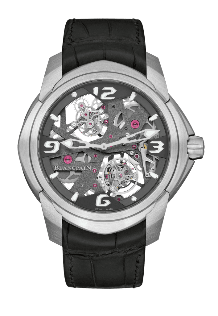 In 2013, Blancpain released the first Tourbillon Carrousel, an innovative and revolutionary complication. At this year’s Baselworld, Blancpain introduced another cutting-edge watch with its L-evolution Tourbillon Carrousel. Both complications are meant to counteract the effects of gravity. The two complications are powered by different gears and have designated barrels. The tourbillon rotates around the fixed seconds wheel to keep the escapement in constant motion. The carrousel powers its rotation with a gear train. The Blancpain L-evolution differs from the brand’s original tourbillon carrousel with its case designs and materials and the lengthy power reserves. The case and dial have many hard angles, with abstract numbers that differ greatly from the classic, traditional designs that are typical and expected from Blancpain. The platinum watch case is abstract and has a futuristic look. At 11 o’clock, one can see the tourbillon and the carrousel is placed at 5 o’clock. The caliber 2322V2 movement has over 350 parts and is on display through the transparent case back. This watch retails at $373,130 and only 50 will be made. Learn more about the watch here.