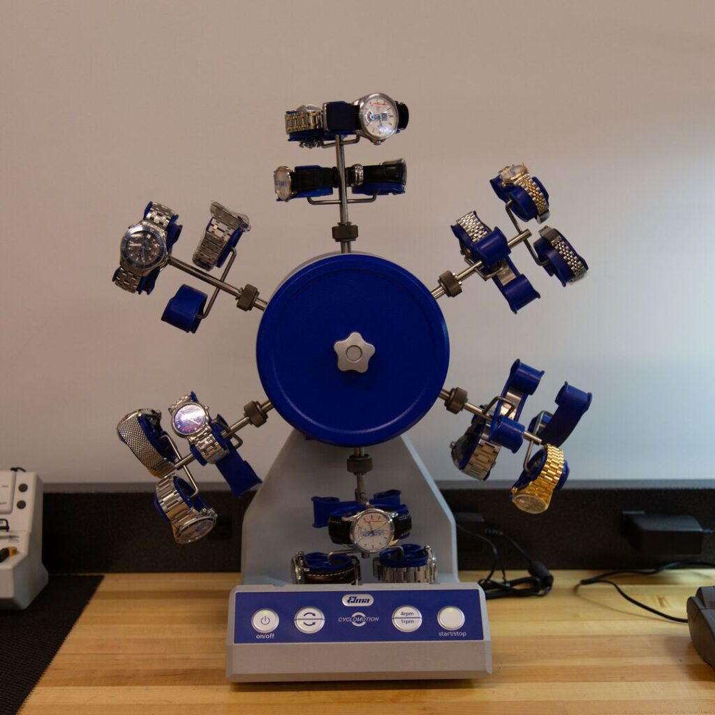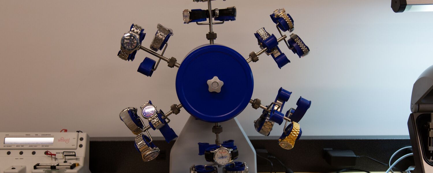 Watches about to be water pressure tested at METAS