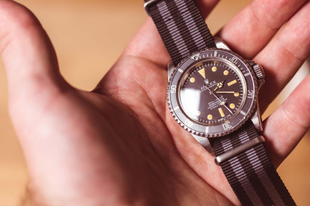A little more modern, yet still vintage and filled with provenance is his ghost bezel Rolex Submariner 5512. This watch is from before an era of computerization in diving. It is a tool watch that has seen depths many people haven’t traveled. This Submariner has a gorgeous patina but still ticks beautifully.