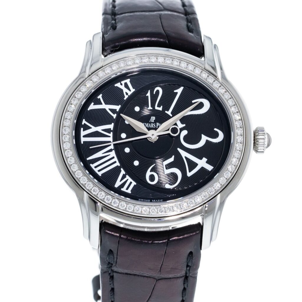 The Millenary is an incredibly unique family of watches from the Audemars Piguet brand. The original inspiration for the design of the collection came from the Coliseum in Rome. It gives the models their overtly neo-classical aesthetic and distinctive elliptical shape. This creates the illusion of three-dimensional depth like the famous architecture. In this ladies’ example from the collection, the brand incorporates the added bonus of a diamond set bezel. It provides the perfect frame for this model’s unique black “Flinque” patterned dial. In addition is showcases a distinct combination of both Arabic and Roman numeral hour markers.