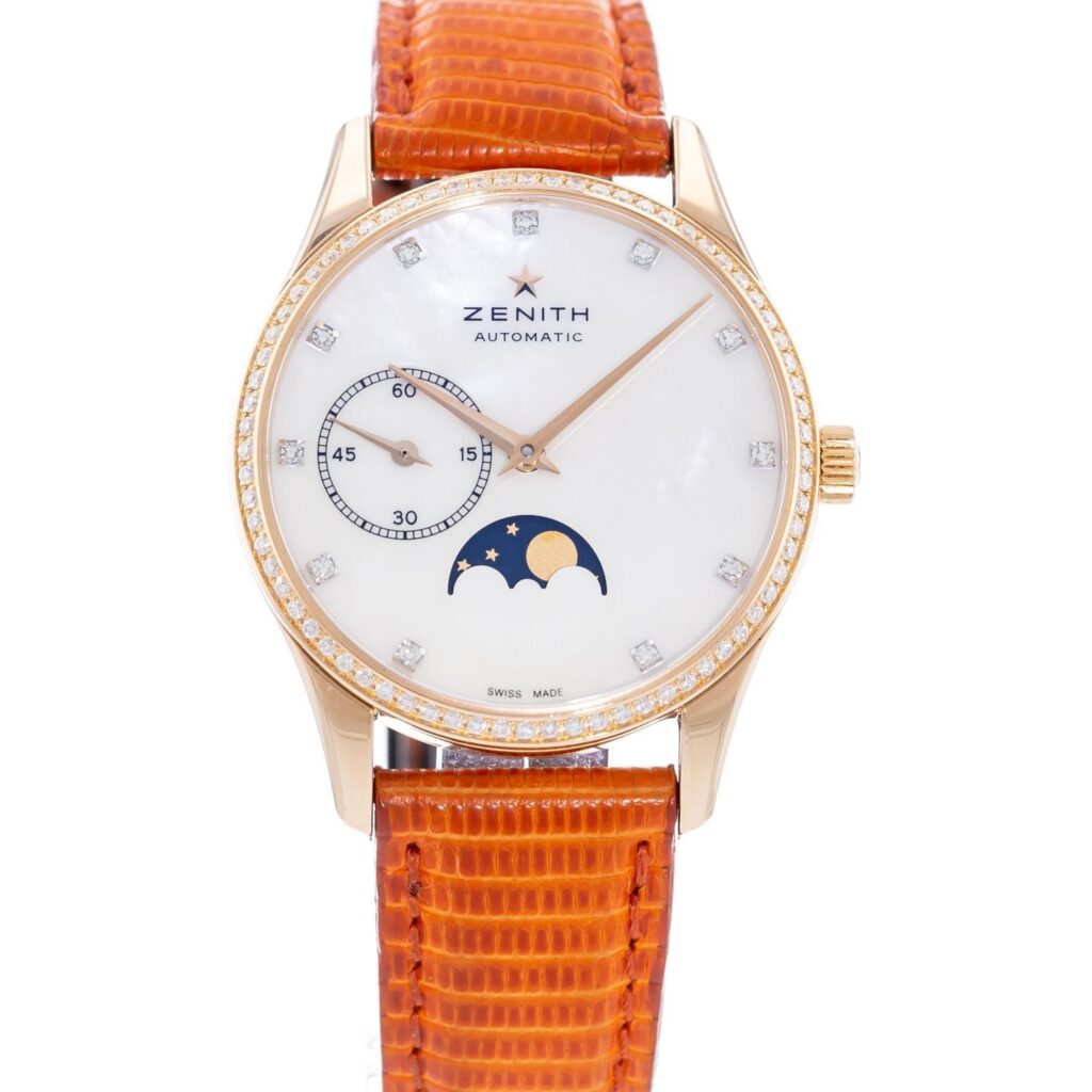 In 2016, Zenith built upon their popular ladies’ Elite collection with the addition of a moonphase complication. The brand has carefully selected each and every detail of this watch to create a strikingly feminine aesthetic. The mother of pearl dial, diamond hour markers and bezel, and the moonphase at the six-o’clock position seamlessly work together. The result is just the right balance of classicism and modernity.